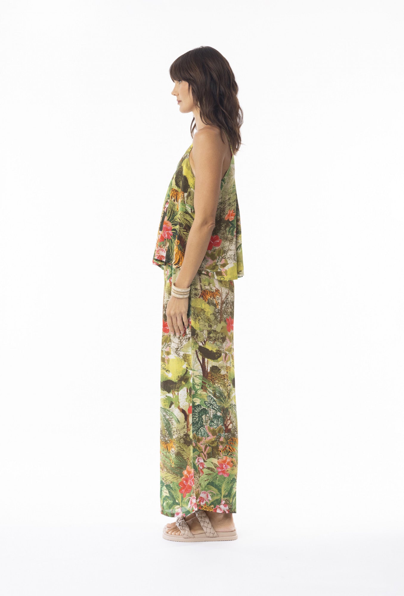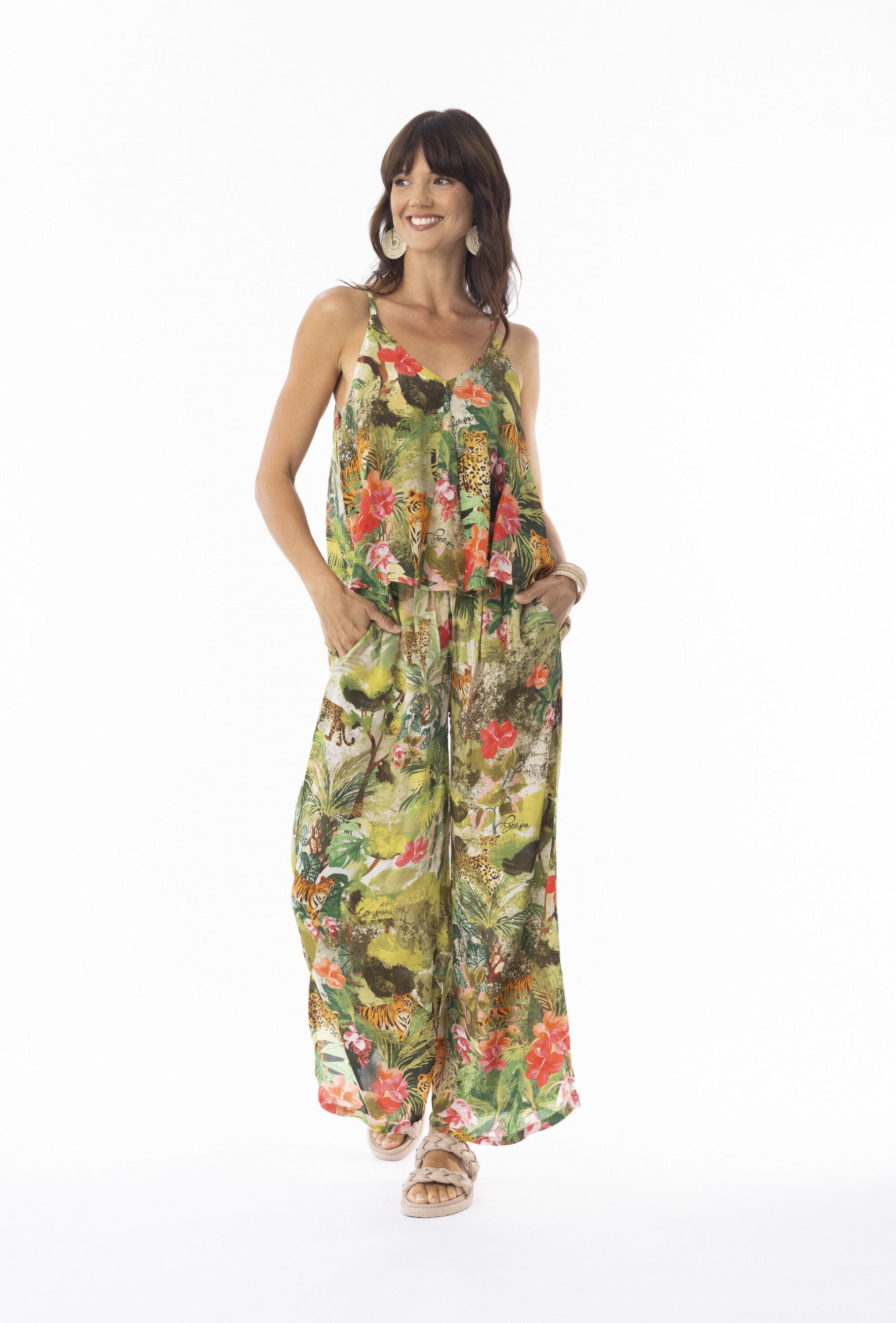 - Wide leg pant with a flowing silhouette in silky rayon