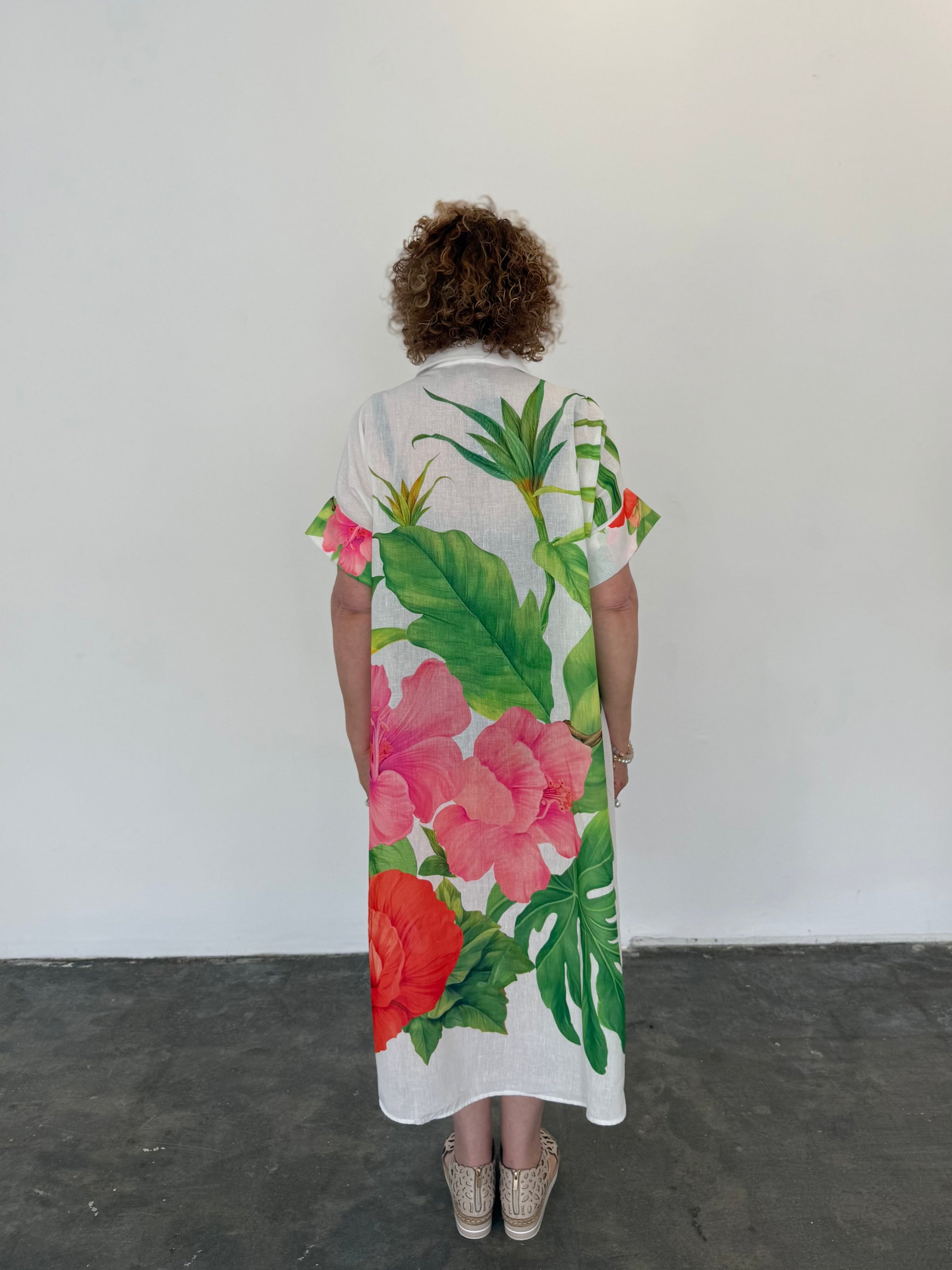 Linen Blend Shirt Dress - Flower/Parrot