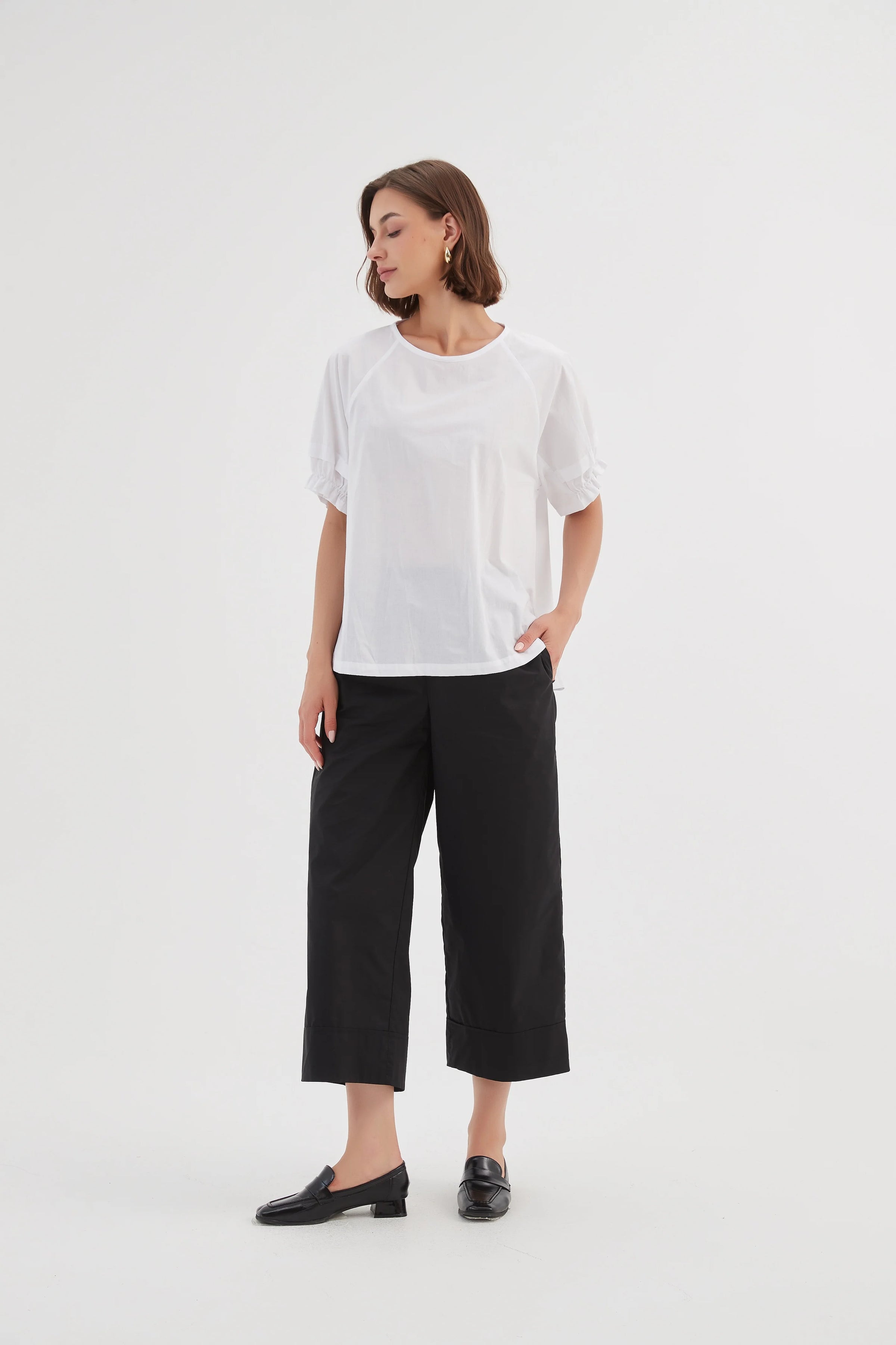 Ruffle Sleeve Lyocell Top - White